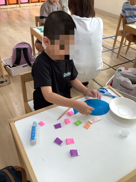 ハサミとのりを使って完成させました✂