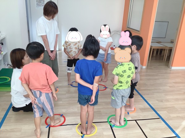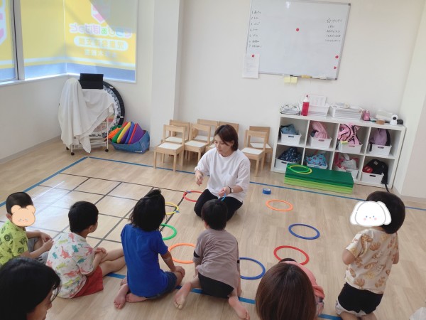 今回は椅子ではなく、丸いわっかを使って行いました!