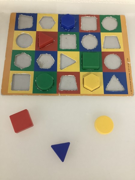 4色の形の違うパズルとそれぞれの穴に入れていきます。