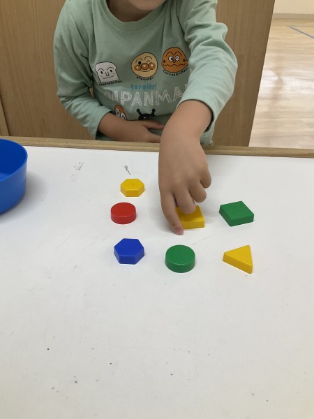「赤いの全部とって」「三角全部とって」「緑の丸と三角とって」