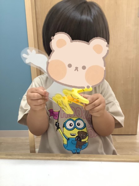 大人が使うと簡単な洗濯バサミでも小さなお子様の手だと、一仕事ですね。