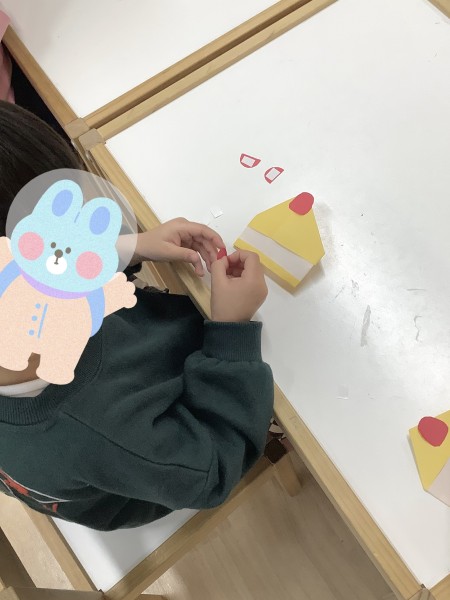 「白いところを、指二本分くらい空けてね」と伝えたところ、二本の指で「このくらいかな?」と確かめながら取り組むことが出来ました👏