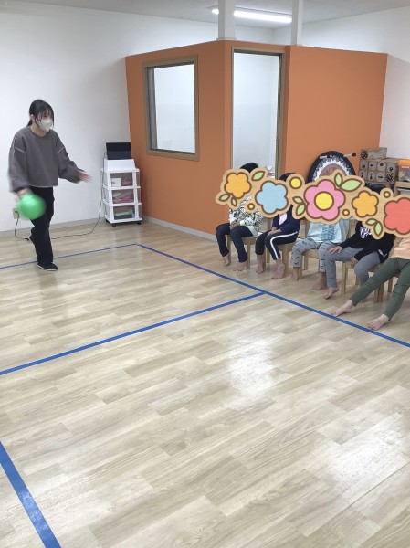 1ヶ月が経った今では、すぐにボールを転がし、お友達を当てることも上手になってきており、次々に交代して楽しんでいます!