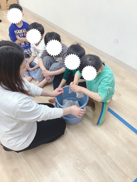 とても上手に雑巾を絞ることができていました👏