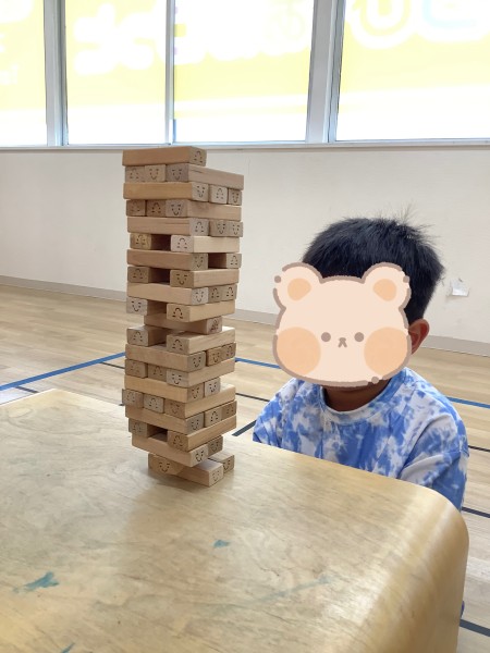 ジェンガをして遊んでいる様子ですね。