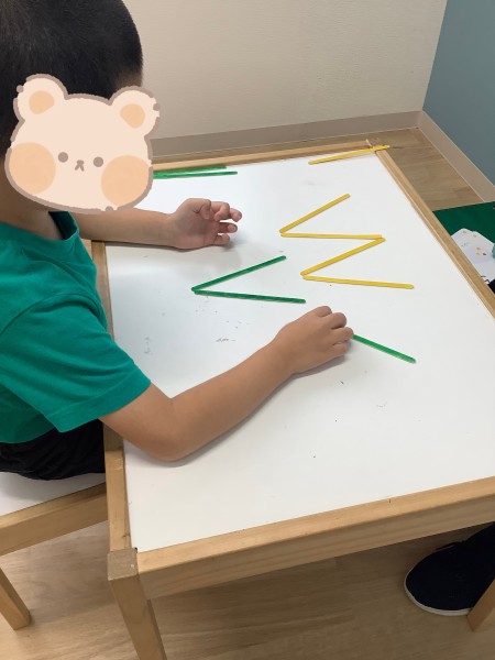 この課題ではアイスの棒を使って平面の中での模倣を行っています。