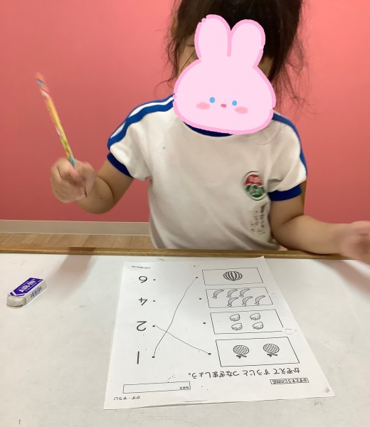 プリントでは鉛筆の操作も加わり更に難易度アップです。